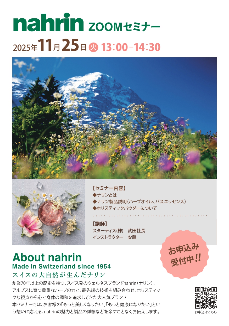 【美容サロン様限定】スイスの叡智が凝縮されたnahrin (ナリン)の無料ZOOMセミナー